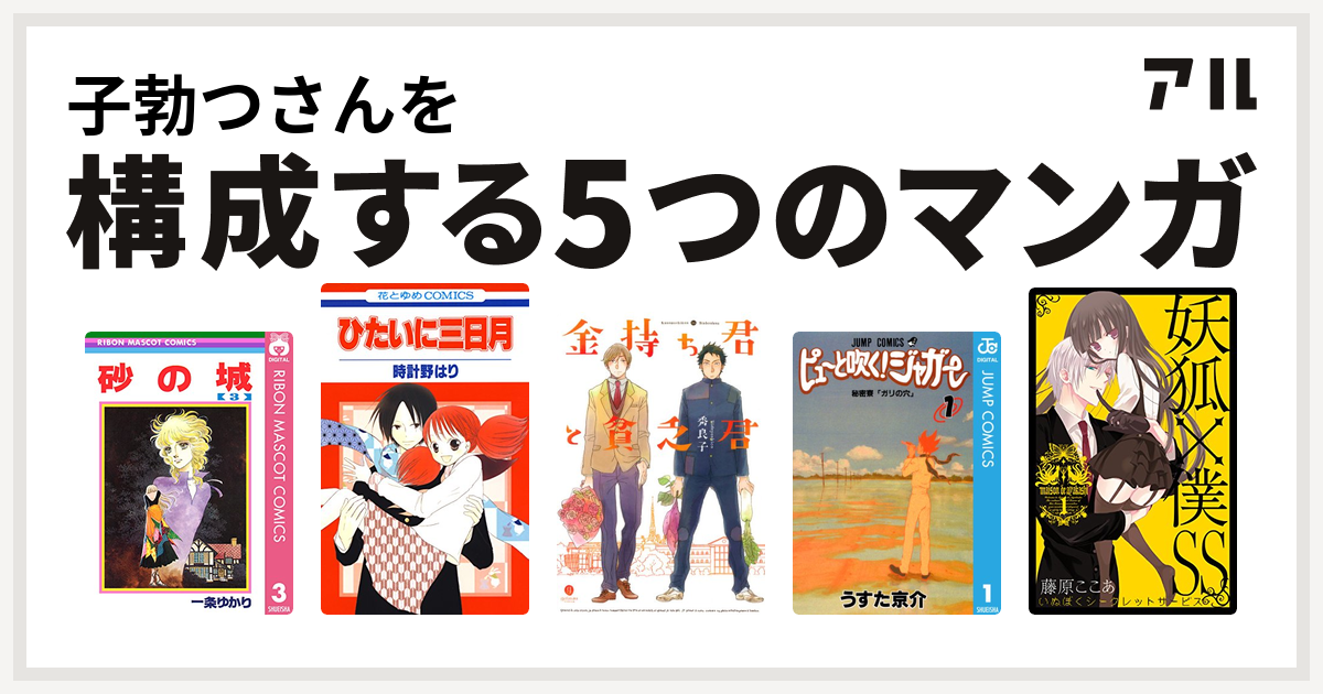 子勃つさんを構成するマンガは砂の城 ひたいに三日月 金持ち君と貧乏君 ピューと吹く ジャガー 妖狐 僕ss 私を構成する5つのマンガ アル